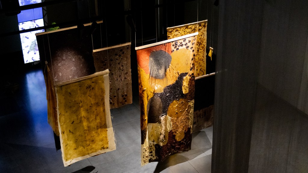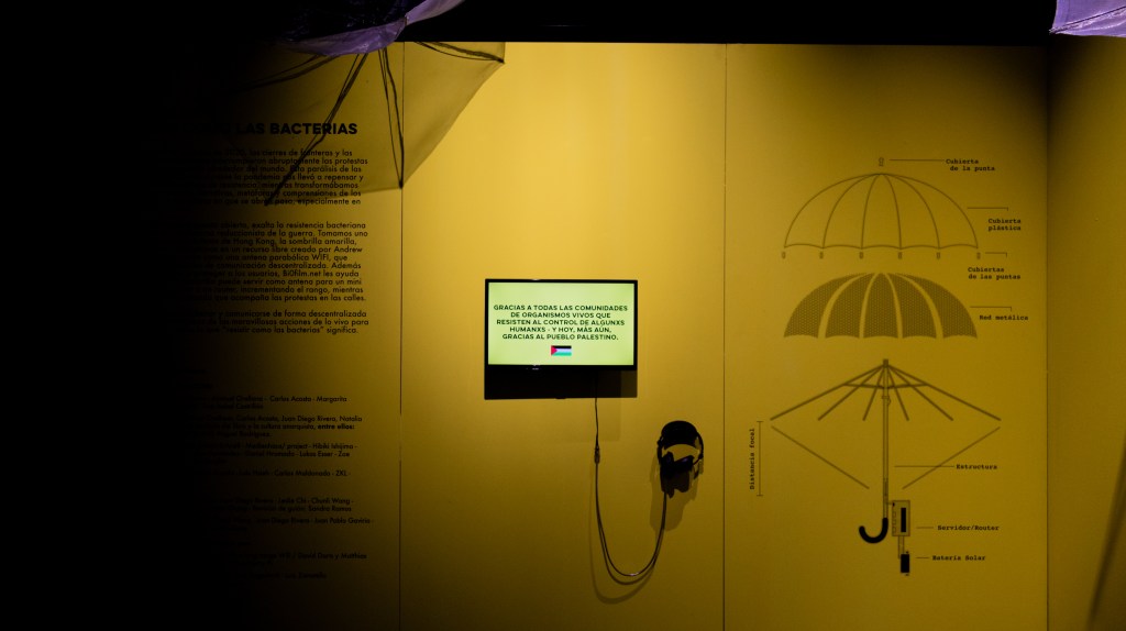 «Esta exposición reúne prácticas artísticas que imaginan otras formas de habitar el planeta y relacionarse con lo no humano. Sus obras invitan a reconocer lo inusitado, lo borroso y lo que está en tránsito, cuestionando las jerarquías que históricamente han separado a los seres vivos y proponiendo vínculos más sensibles y solidarios con el entorno.