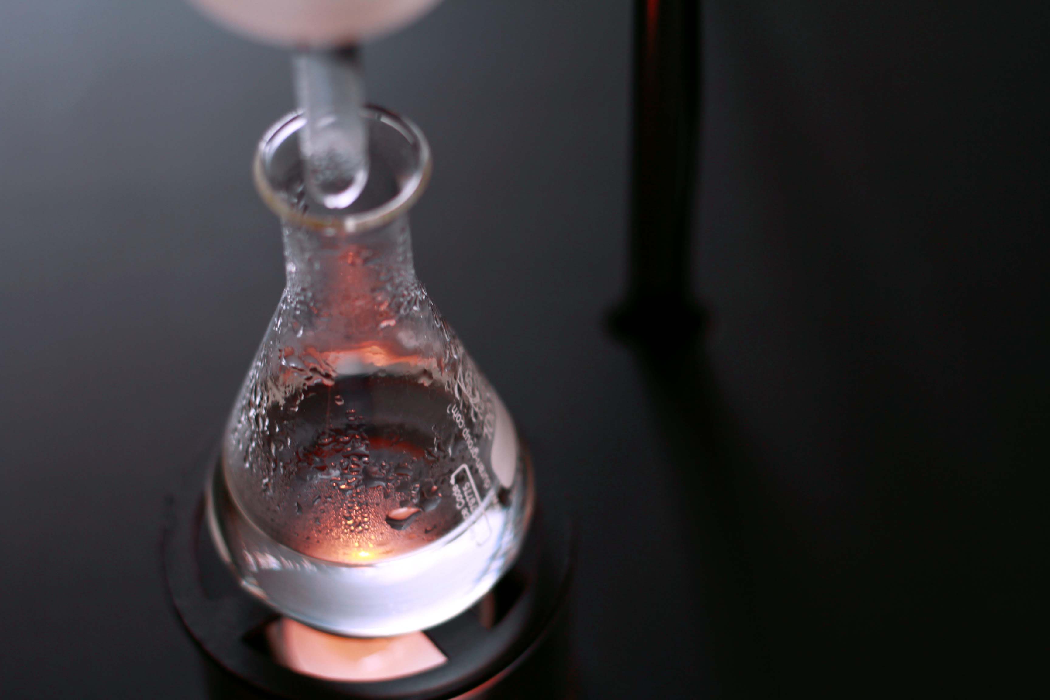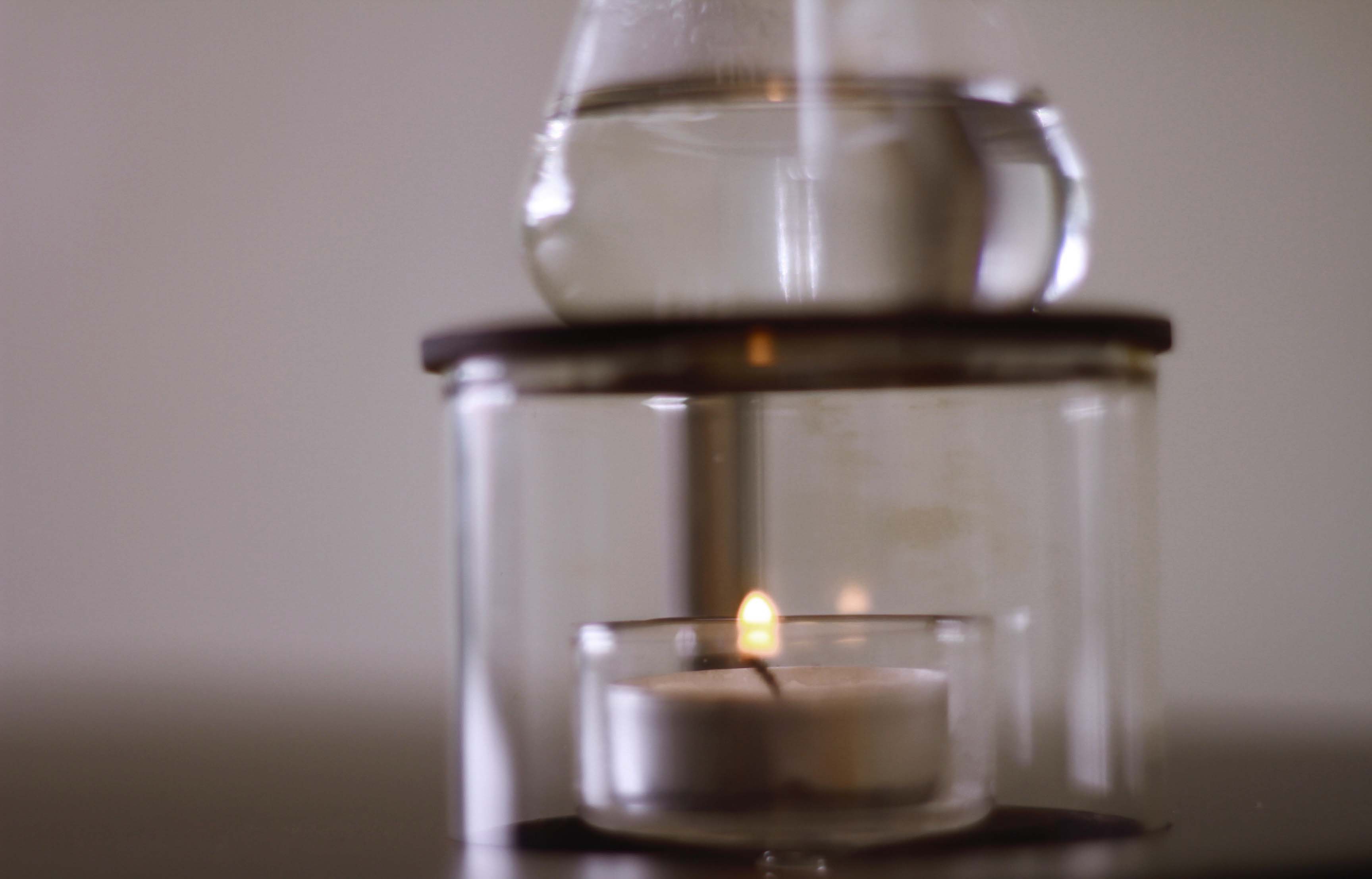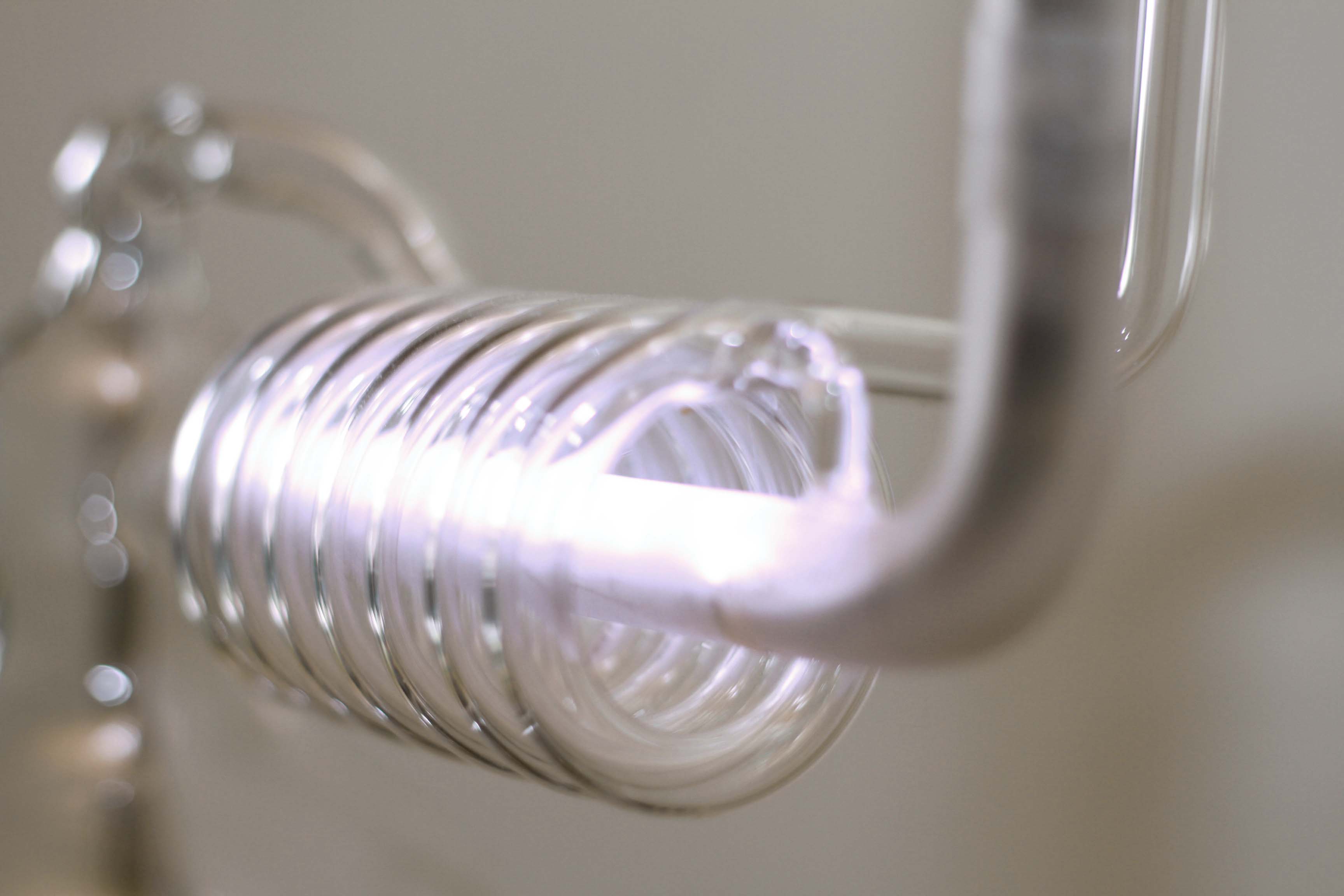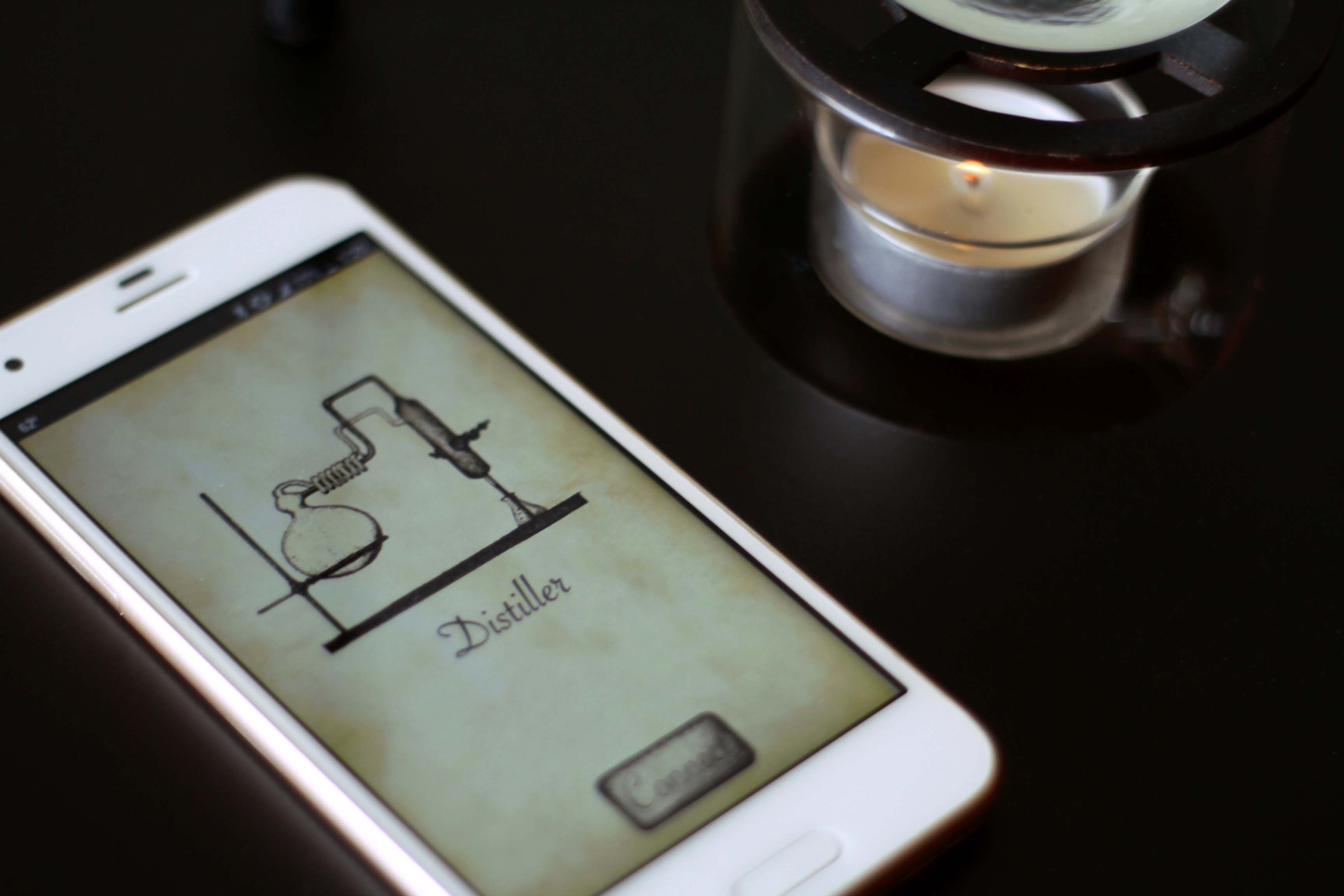Destilador del “Yo” es una escultura interactiva que crea un dialogo con el participante, desde un punto de vista científico, acerca de su propia percepción del concepto de alma y de conciencia. Usando una aplicación móvil, la obra lee el ritmo cardiaco de la persona y lo representa inicialmente en una animación en la pantalla del celular y posteriormente como una luz palpitante dentro de la escultura de vidrio. El dialogo toma parte a través de la misma aplicación, que dependiendo de las ideas del participante puede destilar la representación de luz y transformarla en una gota de agua que se evapora al caer dentro del Erlenmeyer.