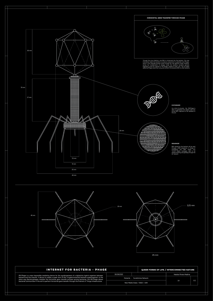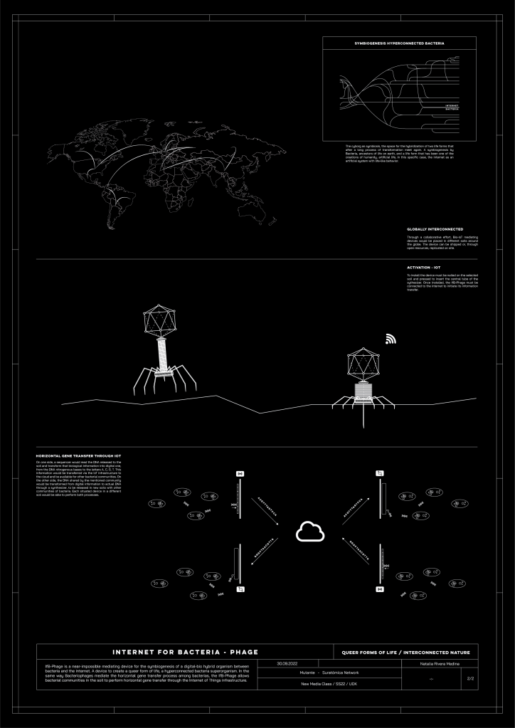 IfB-Fago es un dispositivo mediador casi imposible para la simbiogénesis de un organismo híbrido bio-digital entre bacterias e internet. Un dispositivo para crear una forma extraña de vida, un superorganismo de Bacterias Hiperconectadas. Del mismo modo en que los bacteriófagos median en el proceso de transferencia horizontal de genes entre bacterias, el IfB-Fago permite a las comunidades bacterianas del suelo realizar transferencia horizontal de genes através de la infraestructura del Internet de las Cosas. Cada fago puede secuenciar el ADN liberado por las bacterias al entorno y transformarlo en información digital para enviarla a la nube, y al mismo tiempo recuperar otros genes de la nube para sintetizarlos y liberarlos al suelo, para que estén disponibles para otras bacterias.
